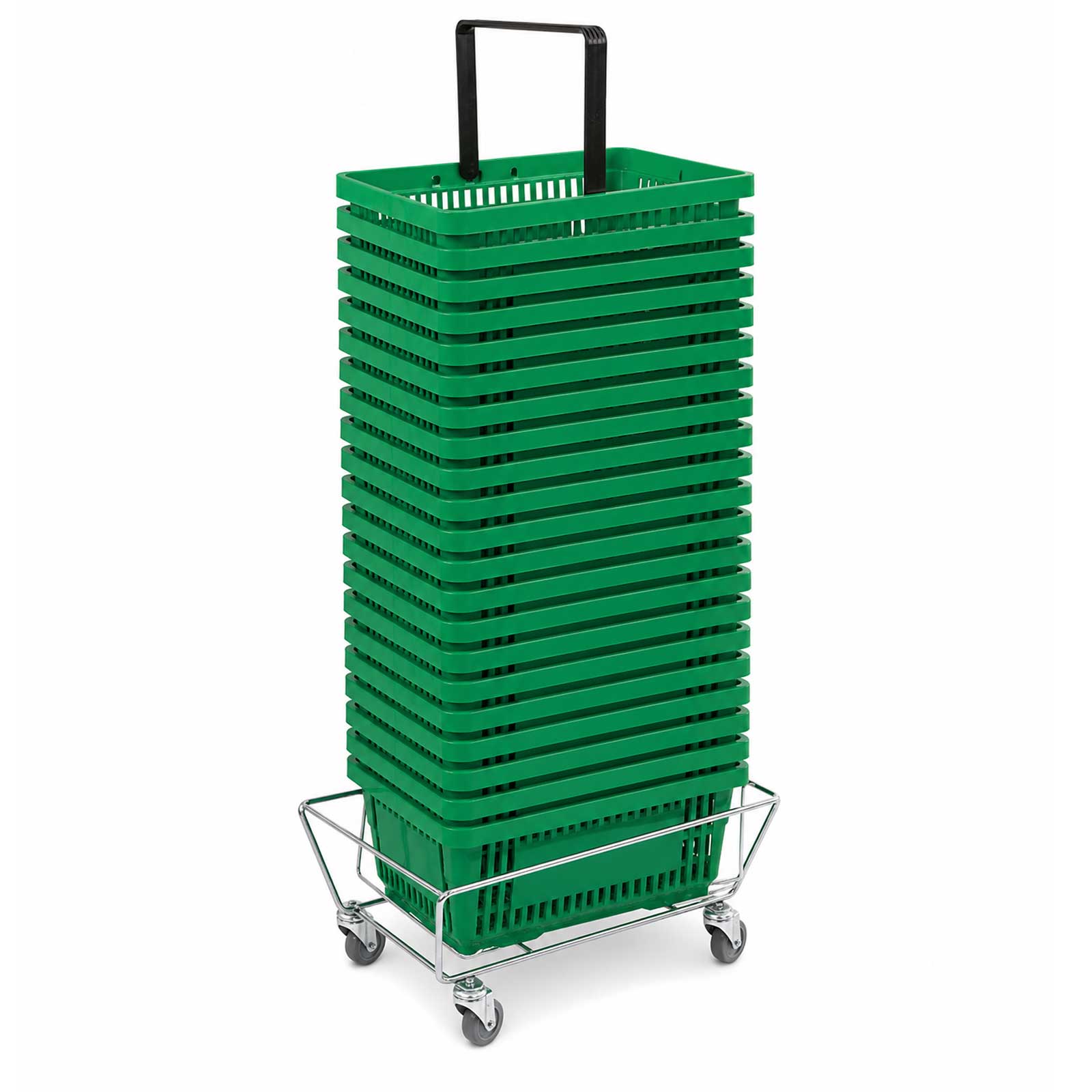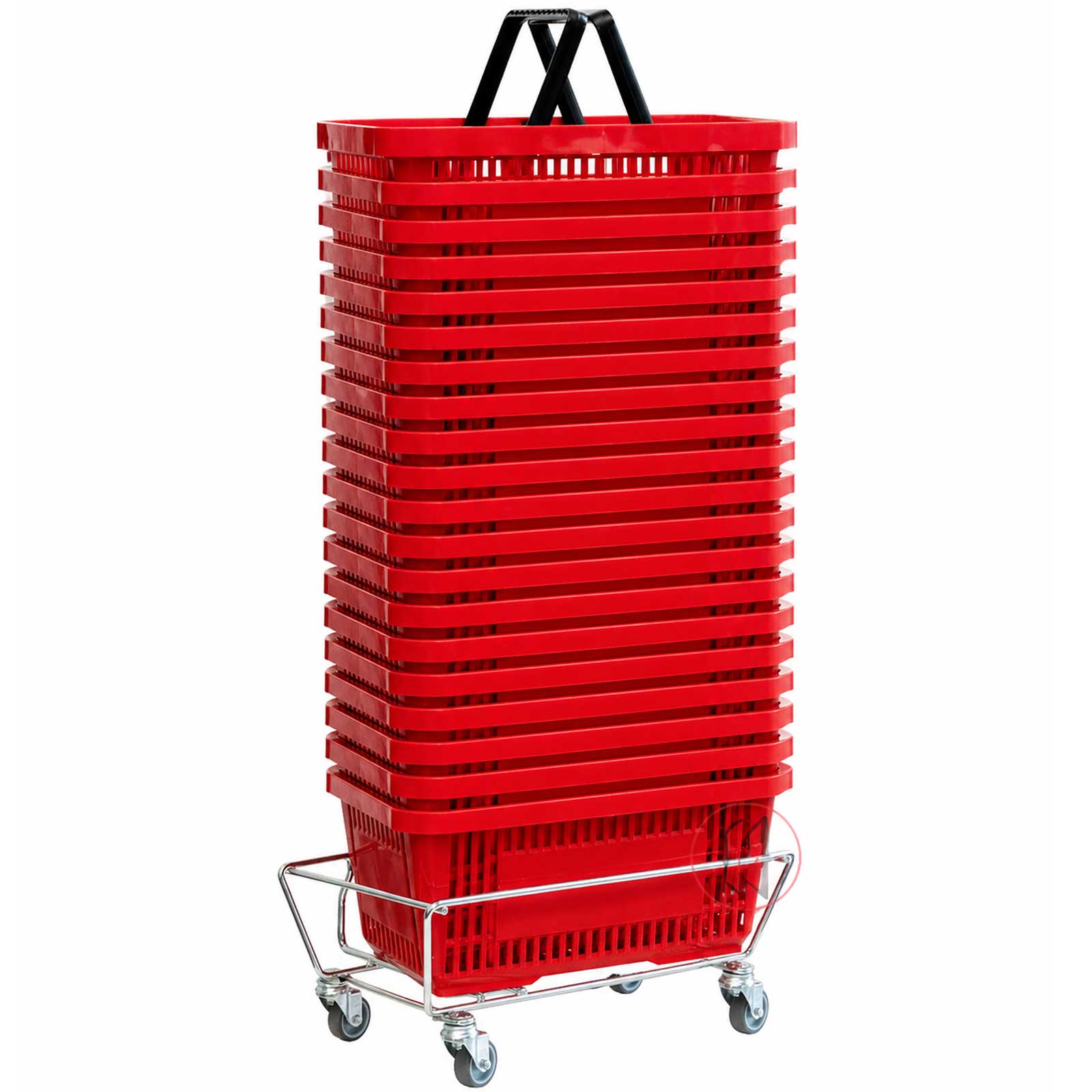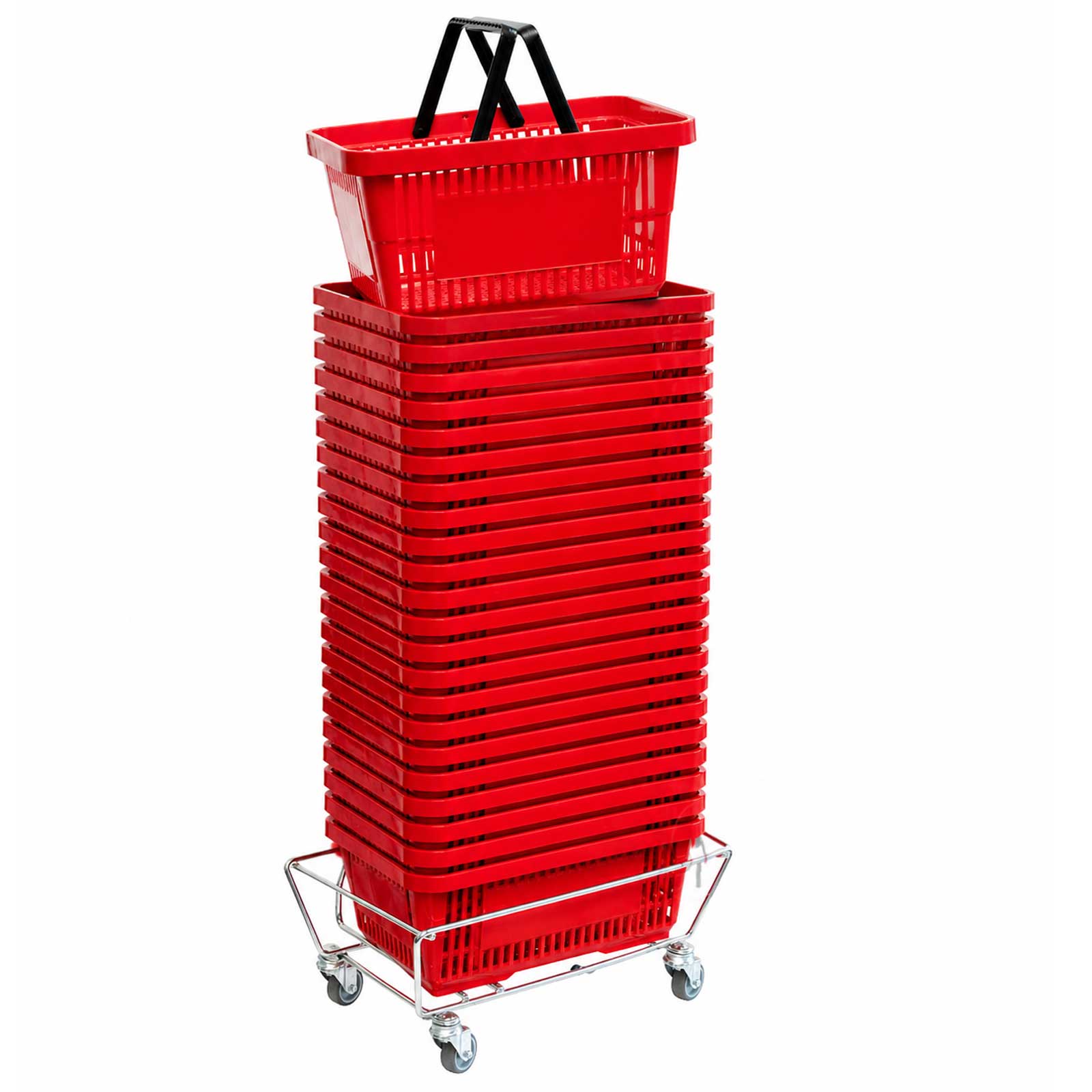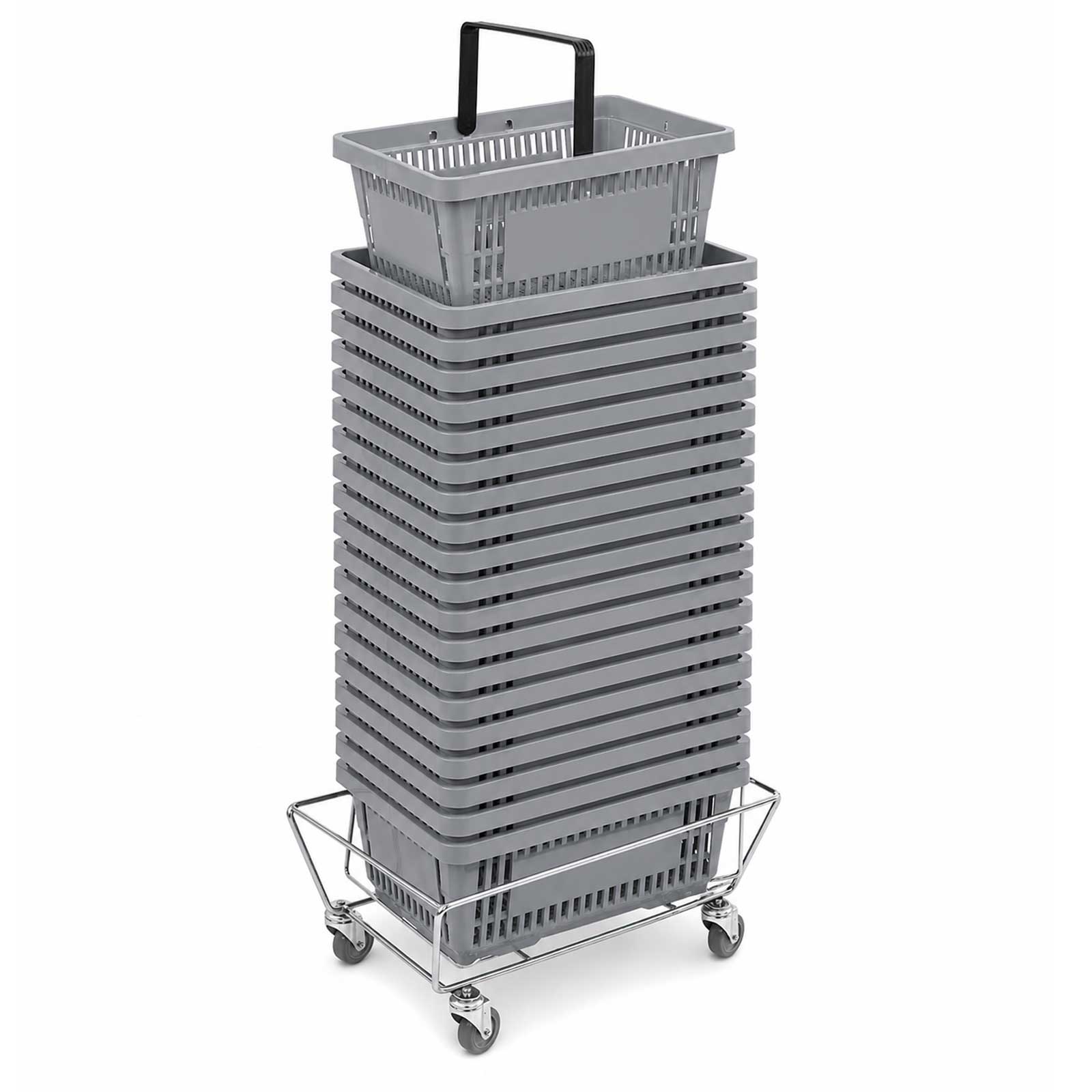 Einkaufskorb Set 20 Stück mit Stapelwagen – platzsparende Korblösung für Einzelhandel & Supermarkt